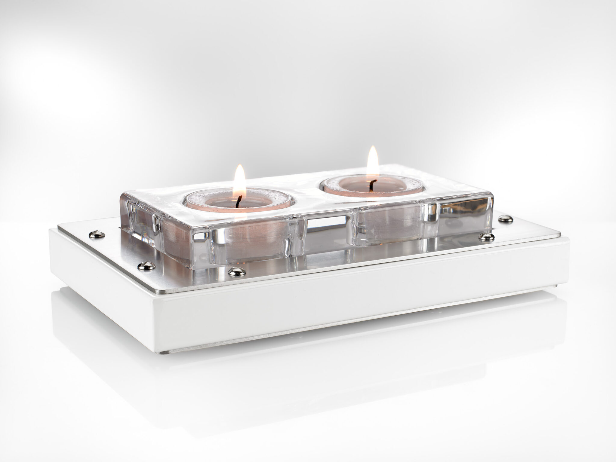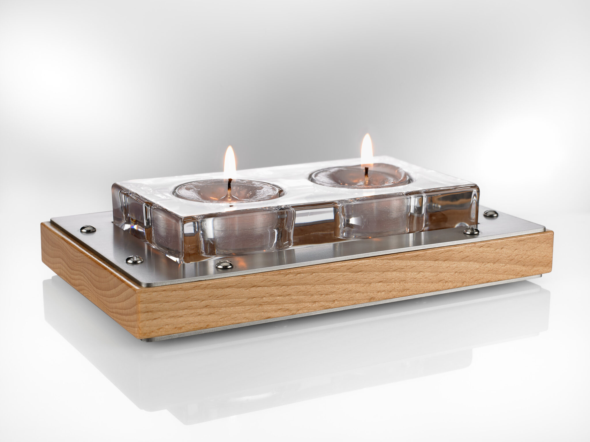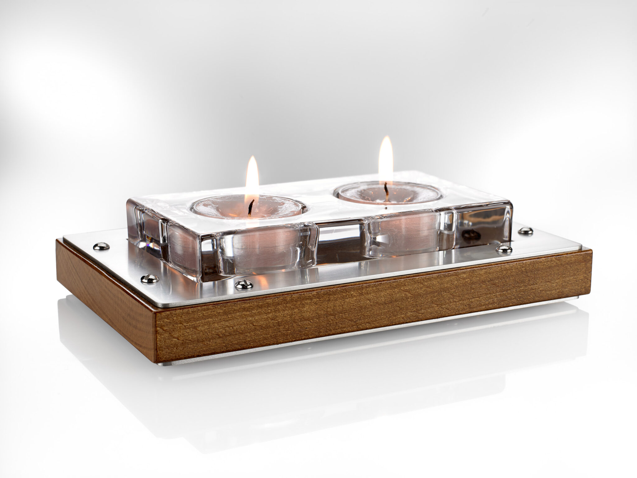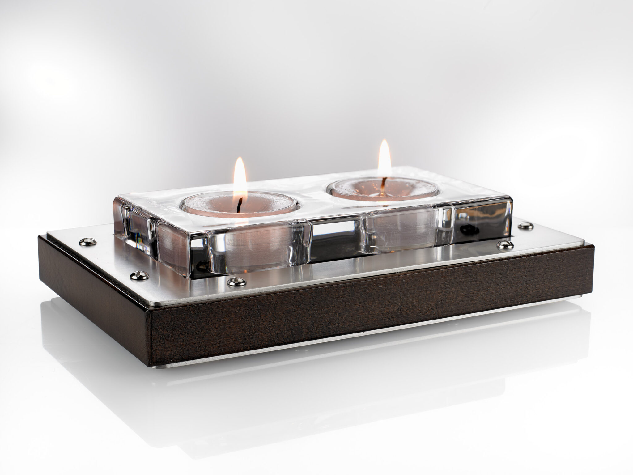 Świecznik – Torion – to połączenie trzech materii. Podstawka wykonana jest z drewna bukowego lakierowanego. Korpus świecznika wykonany jest ze szkła Kryształowego. Ramka ozdobna wykonana jest ze stali szlachetnej, ręcznie szlifowanej. W zestawie dwa podgrzewacze zapachowe . Podgrzewacze wykonane są z najlepszej jakości składników i naturalnych olejków eterycznych, dzięki czemu relaksujące aromaty uwalniają się od początku do końca palenia. Podświetlony szklany korpus świecznika, znakomicie upiększy każdy stół i doda wyjątkowego nastroju wieczornego. Świecznik dostępny w czterech kolorach: Białym, Naturalnym, Wenge, Brunatnym,